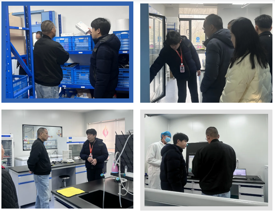 专家团队沿 “仓库→发货间→实验室→生产间” 核心动线实地考察,全面了解我司全流程运营管理体系。仓库的分类精准化管理、发货间的环保化包装与品质化保障、实验室严格落地的 7S 管理标准,以及生产间全自动化 ELISA 工作站的高效运行,均给专家们留下深刻印象。