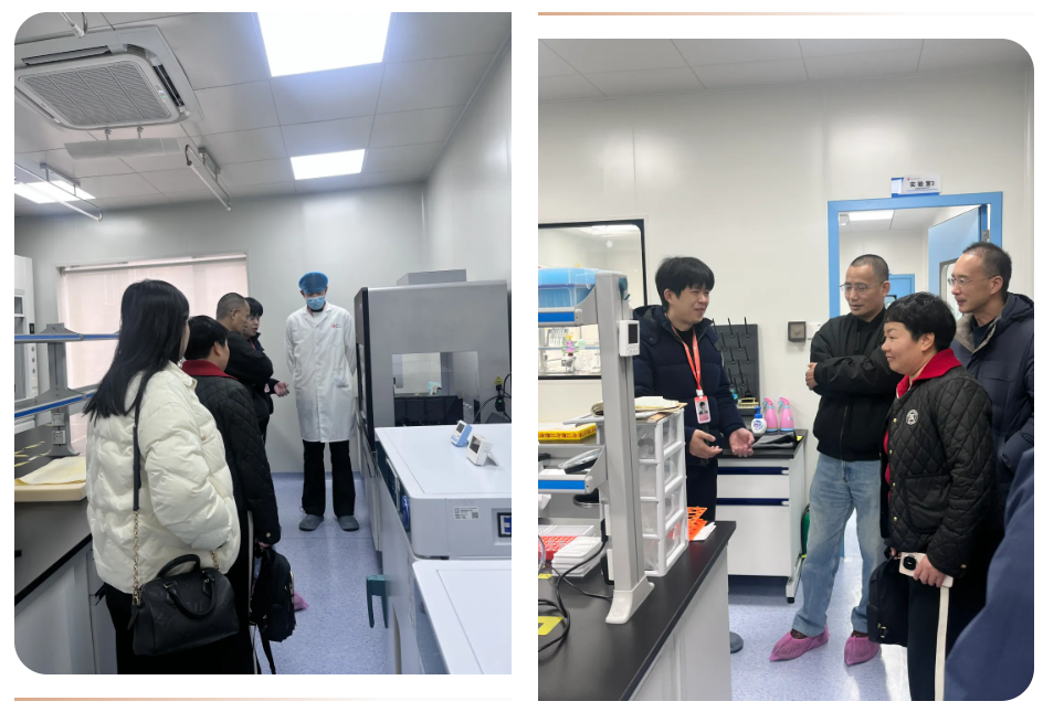 2025 年 12 月 30 日,武汉大学中南医院检验科主任涂建成教授(曾任职于约翰斯・霍普金斯大学)、武汉大学研究生办副主任杨雨飞主任、湖北省广西商会唐会长一行莅临我司进行学术交流,并参观了我们公司的自动化设备,以及日常实验室管理,这次交流不仅为我们带来了学术上的启发,还得到了涂教授和杨主任的高度赞赏!