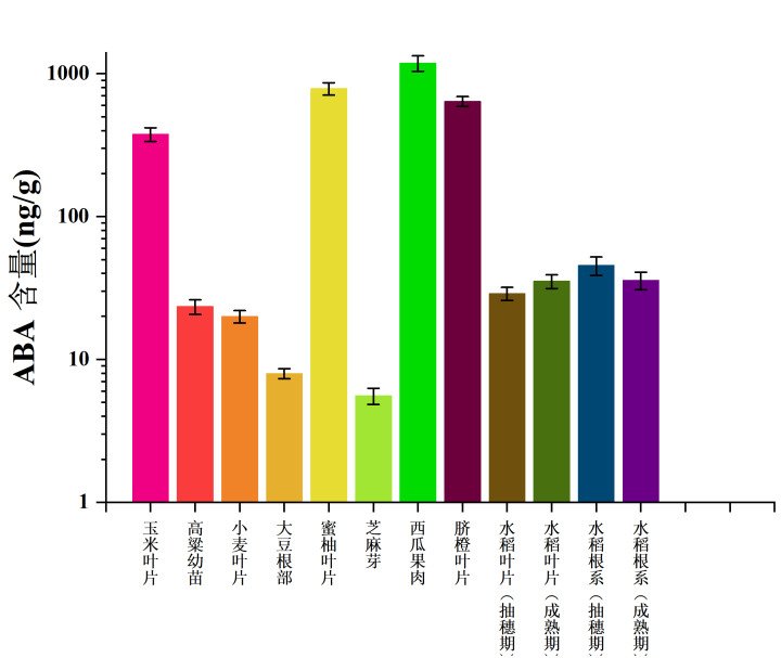 图3不同植物样本的ABA含量测定