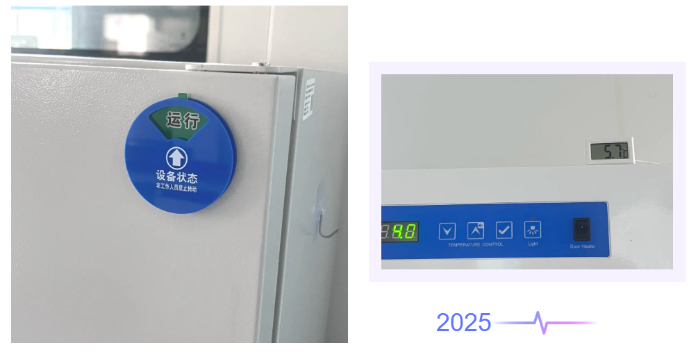 值得一提的是,实验室中诸多贴心小细节更获专家点赞:冰箱额外配置独立温度表,确保试剂存储环境精准可控;每台设备均贴有 “使用 / 休息” 状态标识道具,让操作流转更高效便捷。