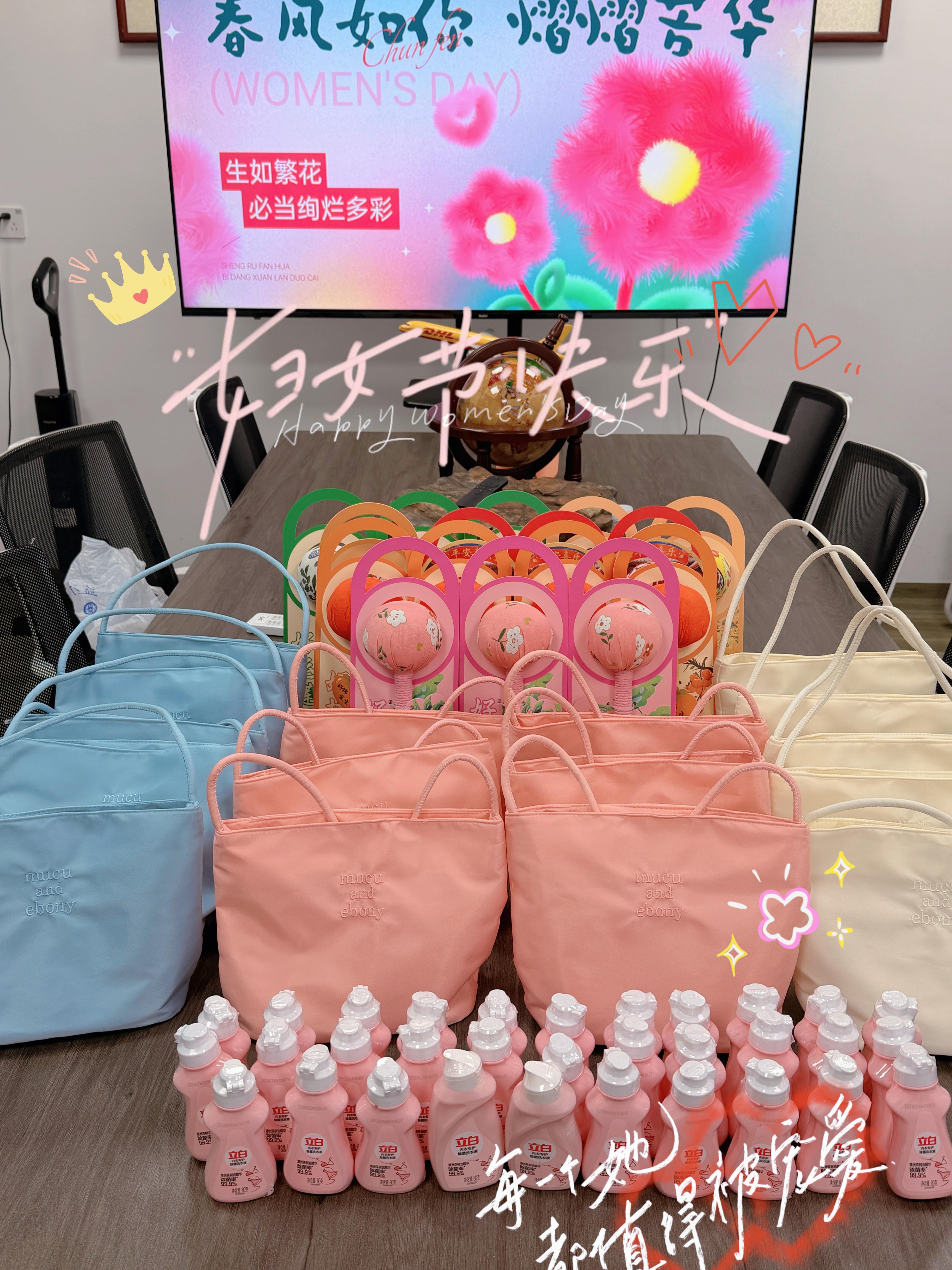 春风送暖,芳华绽放。在第 116 个三八国际妇女节来临之际,公司为每一位优秀的女同事送上节日祝福与暖心好礼 ——精致韩国 ins 风包包、立白洗衣液两瓶、养生艾草锤,以实用又贴心的礼物,致敬每一位闪闪发光的她。